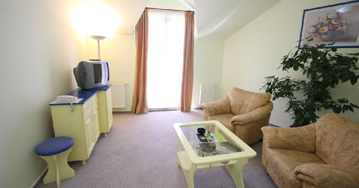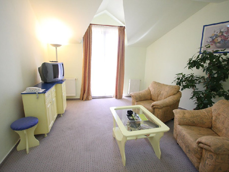 Suitele sunt formate din dormitor cu pat matrimonial si living cu canapea extensibila.
