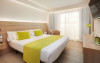 The hotel Sabina & Suites is located next to a public sandy beach. The nearest restaurants and bars can be reached in a few minutes on foot. The old town is only around 200 m away. Shops are right on your doorstep, a supermarket is around 200 m away. There is a 24h shuttle service between the hotel and the airport (for a fee) 24h a day. The beach is patrolled by a lifeguard. Here, there are cushions, sun umbrellas and beach towels available. Near the beach there is a promenade where you can go for a stroll. The air-conditioned hotel has a 24h reception (check-in is possible around the clock), a lobby, Wi-Fi, internet access, 3 lifts, a jacuzzi, showers and changing rooms, a first aid kit as well as a TV lounge with satellite TV. In the outdoor area you will find a supervised pool (open all year), where sun loungers, sun umbrellas and pool towels are available for free. For children there is also a separate children's pool. Furthermore, outside you can find a roof terrace. Inside the hotel you can use a heated indoor pool. You can store your valuables in the safe (extra fee), and your luggage in the hotel`s storage room. In addition, the hotel Sabina & Suites is video-monitored 24h a day. For your entertainment, the hotel offers a library/reading room. For very young guests, kid`s chairs and cots can be provided. For the smallest children prams can be rented in the hotel. There is also a laundry service available at an additional cost to customers as well as an ironing service. Ironing equipment can also be rented at the hotel for a fee. For your comfort there is a concierge service. The energy supply is 230 and 240 Volts. If you want to explore the holiday region, you can use the car and motorbike rental service close to the hotel (extra fee). In your hotel, a lot of focus is placed on sustainability. This includes the hotel`s own recycling bins, the provision of soap, shampoo and lotion dispensers, organic food and ecological meals, a central room air-conditioning and environmentally-friendly cleaning. That is why the hotel Sabina & Suites was also awarded a sustainability certificate. Euro/Master Card, Visa and EC cards are accepted as means of payment. Due to its barrier-free facilities , such as a revolving door in the entrance area, a sliding door in the entrance area, an automatic hotel door, barrier-free entrances, wheelchair accessible rooms, a wheelchair accessible lift and wheelchair-accessible bathrooms, the hotel is also suitable for wheelchair users. Catering As catering services the hotel offers half board, breakfast only and self-catering. Breakfast is offered American, continental or from the buffet. Dinner is also served as a buffet with starters, salads and desserts (extras on request). Half board includes breakfast and lunch. For the meals, there are a buffet restaurant with terrace (gluten-free and vegetarian dishes) and a bar, the cafeteria as well as the pool bar. The drinks menu of the hotel includes water, soft drinks, coffee and tea, beer and wine. For dinner, guests are asked to wear appropriate clothing in the restaurant. Distances- Discotheque: approximately at 20 km