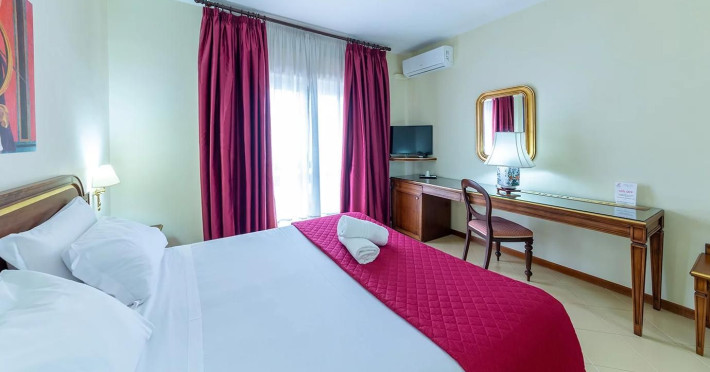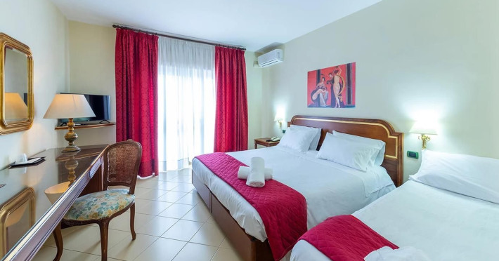 The Hotel Sakura is located at the foot of the "gentle giant" Vesuvius and represents an excellent strategic starting point for visiting the many splendid places in Campania. Managed by young Neapolitan entrepreneurs from families dedicated to hospitality for four generations, the hotel offers a unique and efficient context, with a classic and modern touch at the same time. in which Neapolitan culture merges with love and passion for oriental tradition. Services: hall, 24-hour reception. Free internet access and Wi-Fi. Terrace. Various conference rooms, the largest of which has a capacity of approx. 160 seats. Free unattended parking. Pets allowed, on request for a fee, respecting the rules of good behavior established in the hotel.The Hotel Sakura is located at the foot of the "gentle giant" Vesuvius and represents an excellent strategic starting point for visiting the many splendid places in Campania. Managed by young Neapolitan entrepreneurs from families dedicated to hospitality for four generations, the hotel offers a unique and efficient context, with a classic and modern touch at the same time. in which Neapolitan culture merges with love and passion for oriental tradition. Services: hall, 24-hour reception. Free internet access and Wi-Fi. Terrace. Various conference rooms, the largest of which has a capacity of approx. 160 seats. Free unattended parking. Pets allowed, on request for a fee, respecting the rules of good behavior established in the hotel.