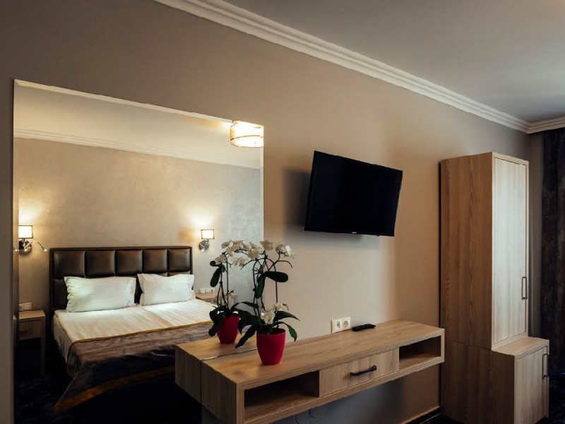 Hotelul Sandoria ofera tuturor turistilor cazare intr-un loc calduros si primitor, unde se pot relaxa intr-o ambianta deosebita, bucurandu-se de servicii de inalta calitate si profesionalism. Specialistii si expertii au participat impreuna pentru a crea un stil unic al designului ce imbina eleganta clasica si rafinamentul modern in fiecare aspect al hotelului Sandoria din Targu Mures. Decorul plin de eleganta, ambianta plina de farmec, barul si terasa, dar si mesele savuroase sunt o mica parte din motivele pentru a poposi la restaurantul Sandoria.Hotelul poate gazdui 128 de persoane in toate cele 70 de camere pe care vi le pune la dispozitie intr-un mediu spatios si confortabil, perfect pentru relaxare.