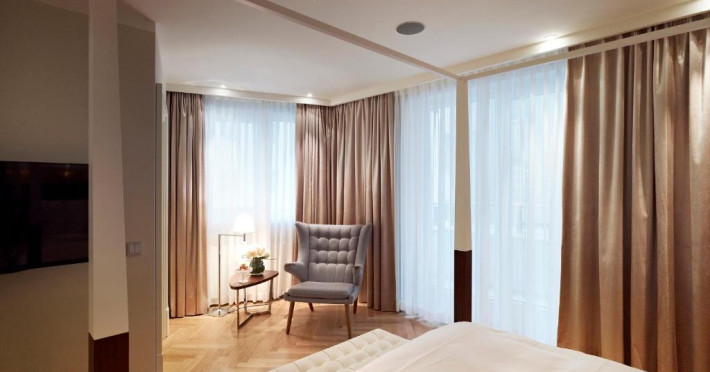Camerele spațioase au un design interior elegant și sunt decorate cu lucrări realizate de diverși artiști binecunoscuți. Acestea sunt prevăzute cu aer condiționat, podea cu parchet, minibar, TV cu ecran plat cu canale prin satelit și iPod docking station. Băile includ halate, articole de toaletă și uscător de păr.