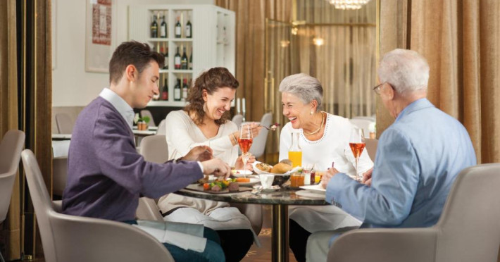 Hotelul Sans Souci găzduiește un bar și restaurantul Veranda, unde oaspeții pot savura preparate din bucătăria austriacă și internațională.