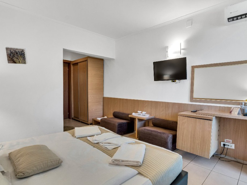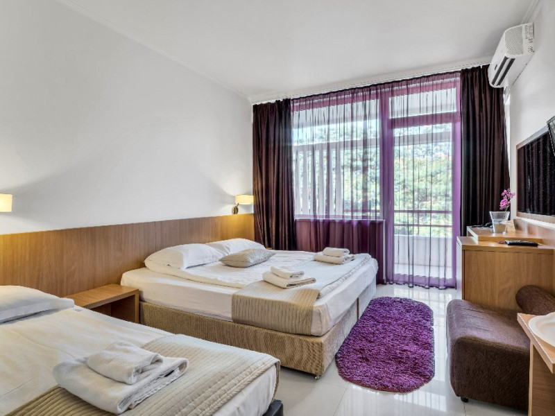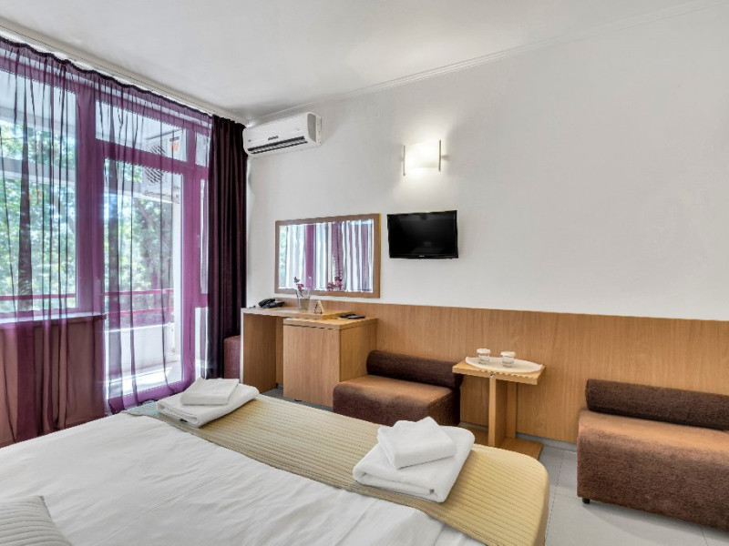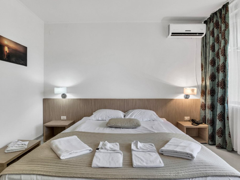 Dotari camere: aer conditionat, TV -LCD, minifrigider, seif, balcon -la camerele de la etaj, pardoseala din gresie, telefon.