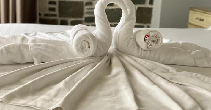 Toate camerele au pereți cu elemente din cărămidă și piatră, precum și mobil tradițional din lemn. Sunt dotate cu aer și TV cu ecran plat cu canale prin satelit, iar unele unități de cazare includ și o cadă spa.