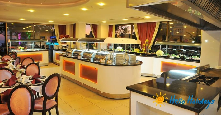 Hotelul dispune de un restaurant principal tip bufet. La cerere se pot oferi meniuri pentru diete speciale sau se poate servi micul dejun in camera.