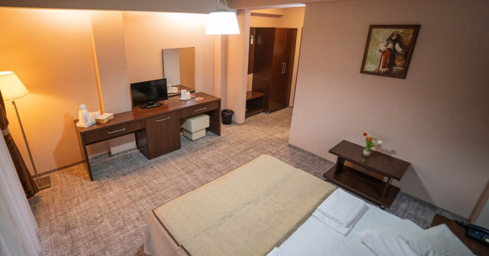 Hotelul dispune de 20 de camere duble si 4 apartamente, un restaurant cu terasa cu o capacitate de 100 de locuri, piscine interioare/exterioare cu apa incalzita, sauna, sala de fitness, teren de sport multifunctional (fotbal, tenis, baschet) cu instalatie de nocturna, crama etc.