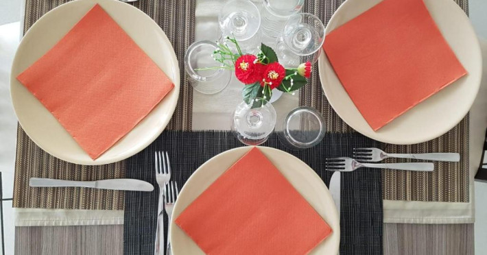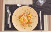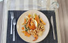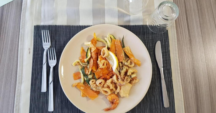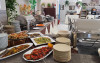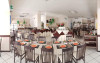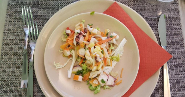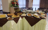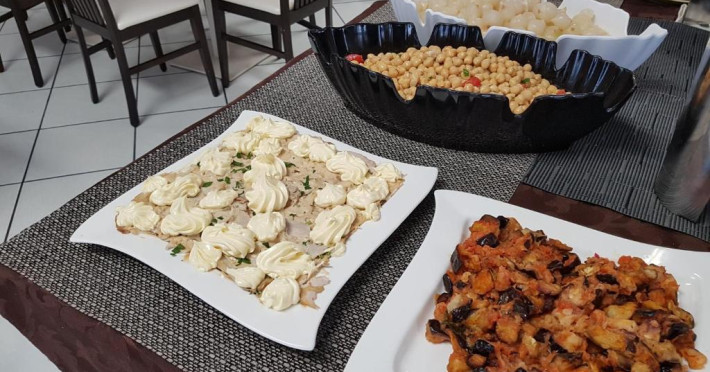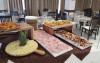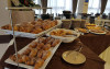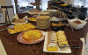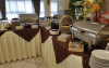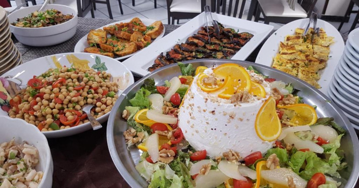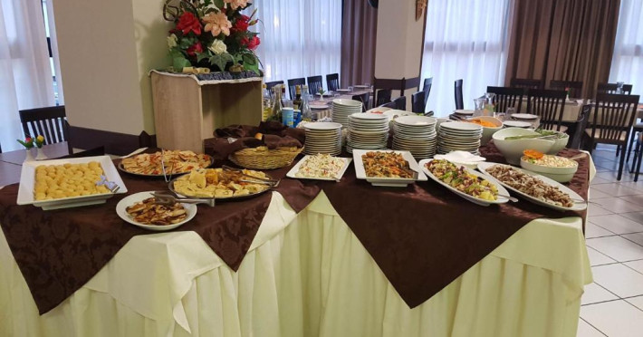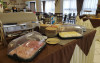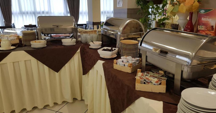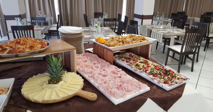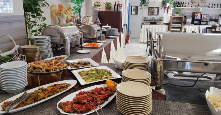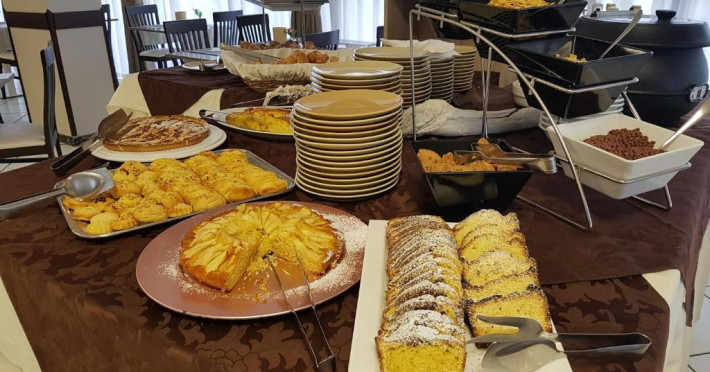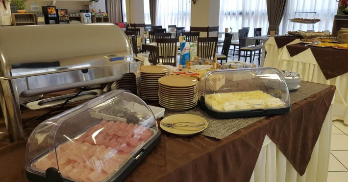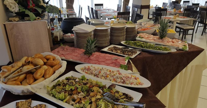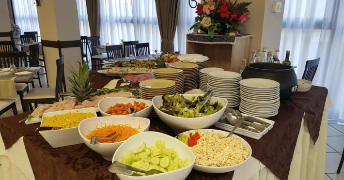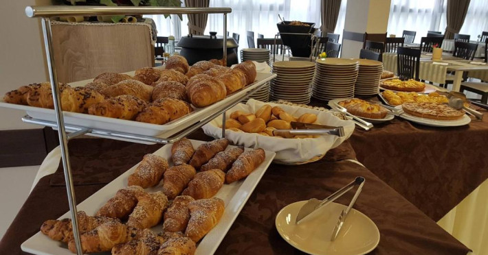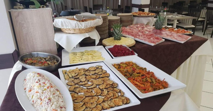Bufetul de mic dejun oferit zilnic include prăjituri tradiționale, iaurt, dulceață, precum și alte preparate dulci și sărate. Restaurantul oferă un meniu à la carte și un bufet de aperitive/legume.