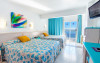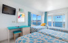 Hotelul dispune de camere moderne si spatioase, aer conditionat, balcoane cu vederi impresionante la mare sau la munte. Toate camere au TV satelit si o baie.
