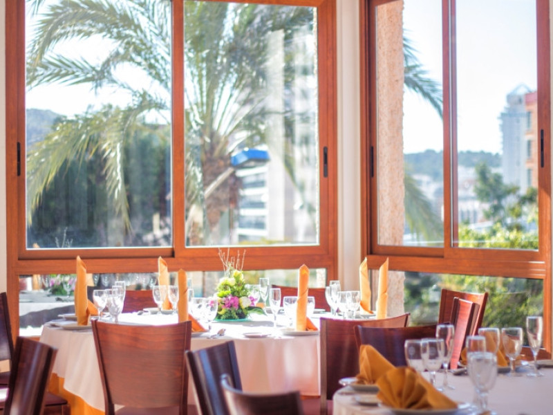 Restaurantul Torre Dorada serveste mese tip bufet, variate, cu SHO W cooking. Exista de asemenea un lounge relaxant, un cocktail bar elegant si o terasa cu un bar.