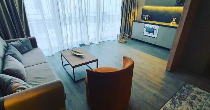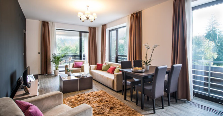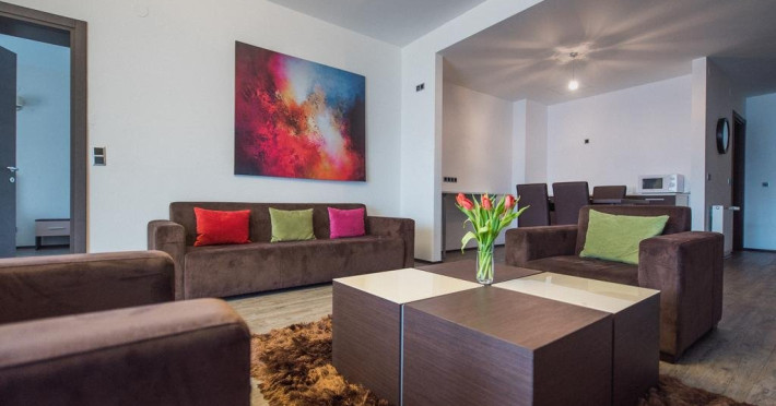 Apartament 2 camere - compus din living, hol si un dormitor cu baie proprie. Livingul este dotat cu o canapea neextensibila. Capactate de cazare 3 adulti sau 2 adulti + 2 copii pana la 12 ani