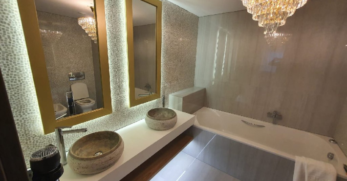 Apartament 3 camere are o supratata de 78 mp - compuse din living, doua dormitoare, fiecare cu baie proprie, grup sanitar si holuri. Livingul este dotat cu o canapea neextensibila. Capactate de cazare 4 adulti sau 2 adulti + 2 copii