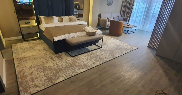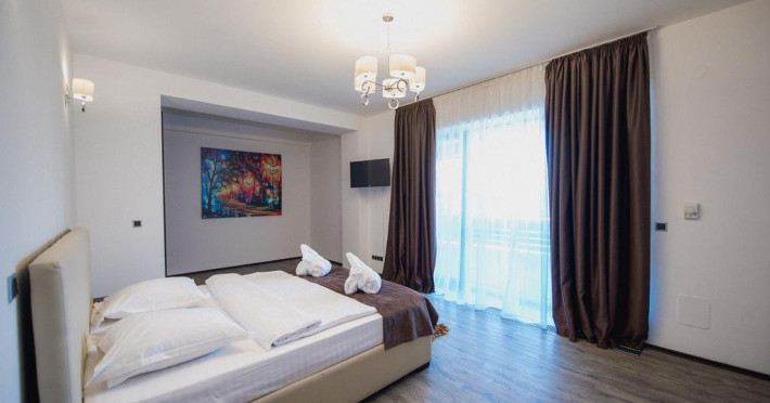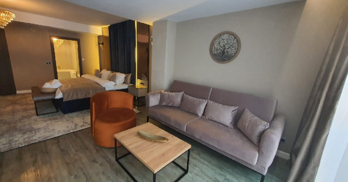 Confort Junior Suite- camera dubla cu pat matrimonial si canapea extensibila. Capactate de cazare 2 adulti sau 2 adulti + 2 copii pana la 12 ani