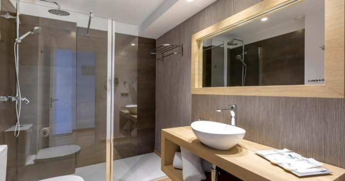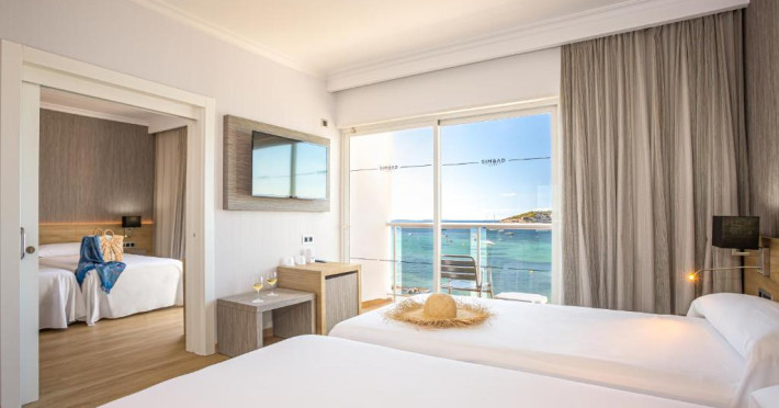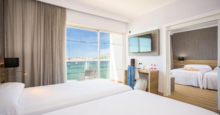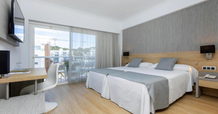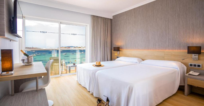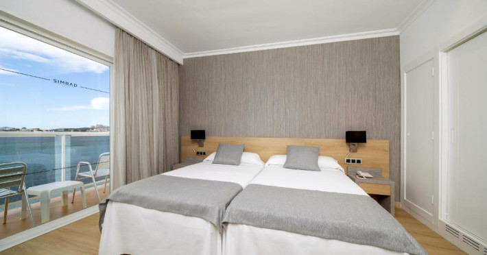 Toate camerele Hotelului Simbad Ibiza au aer condiționat și TV prin satelit. Cele mai multe au balcoane cu vedere la mare și există WiFi gratuit in intreaga proprietate. Baia privată este dotată cu articole de toaletă și puteți inchiria seif.