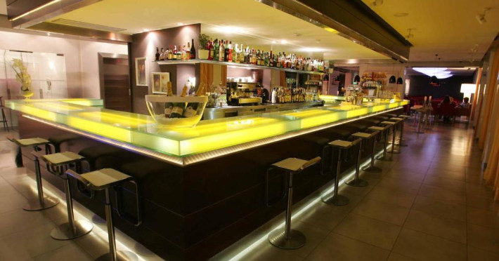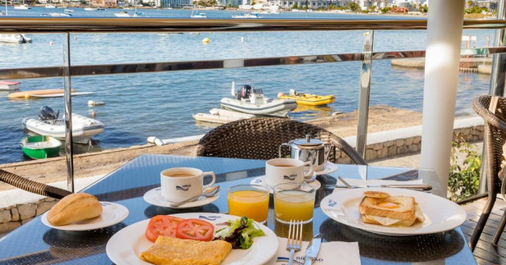 Simbad Ibiza are 2 restaurante. Oferă un meniu à la carte. Există, de asemenea, 2 baruri cu terase, care oferă vedere panoramică la golf.