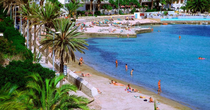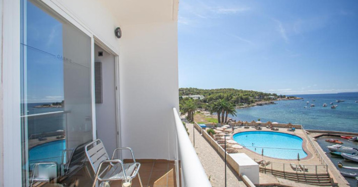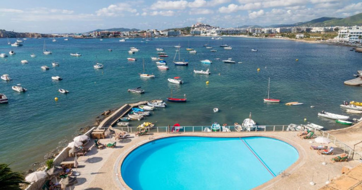 Situat pe plaja din golful Talamanca, la 3 km de orașul Ibiza, acest hotel oferă o piscină in aer liber cu vedere la mare. Există un centru spa gratuit cu sală de sport și cadă cu hidromasaj.