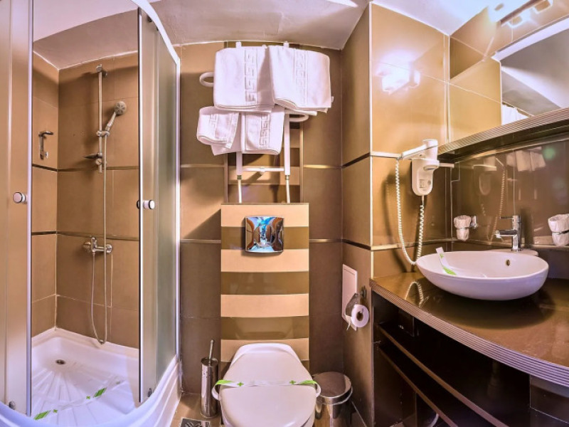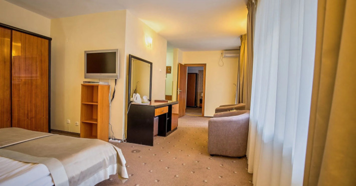 Located in Sinaia, Hotel Rina Sinaia is a 2-minute drive from Sinaia Monastery and 9 minutes from Peles Castle. This hotel is 5.3 mi (8.5 km) from Cantacuzino Castle and 13.9 mi (22.4 km) from Predeal Ski Resort.Located in Sinaia, Hotel Rina Sinaia is a 2-minute drive from Sinaia Monastery and 9 minutes from Peles Castle. This hotel is 5.3 mi (8.5 km) from Cantacuzino Castle and 13.9 mi (22.4 km) from Predeal Ski Resort.Make yourself at home in one of the 246 air-conditioned rooms featuring minibars and flat-screen televisions. Complimentary wireless Internet access is available to keep you connected. Private bathrooms with showers feature complimentary toiletries and hair dryers. Conveniences include phones and desks, and housekeeping is provided daily.Make yourself at home in one of the 246 air-conditioned rooms featuring minibars and flat-screen televisions. Complimentary wireless Internet access is available to keep you connected. Private bathrooms with showers feature complimentary toiletries and hair dryers. Conveniences include phones and desks, and housekeeping is provided daily.Be sure to enjoy recreational amenities, including an indoor pool, a spa tub, and a sauna. Additional amenities at this hotel include complimentary wireless Internet access, ski storage, and a hair salon.Be sure to enjoy recreational amenities, including an indoor pool, a spa tub, and a sauna. Additional amenities at this hotel include complimentary wireless Internet access, ski storage, and a hair salon.Grab a bite to eat at Restaurant Piaza, a restaurant which features a bar, or stay in and take advantage of the room service (during limited hours). A complimentary buffet breakfast is served daily from 7 AM to 10:30 AM.Grab a bite to eat at Restaurant Piaza, a restaurant which features a bar, or stay in and take advantage of the room service (during limited hours). A complimentary buffet breakfast is served daily from 7 AM to 10:30 AM.Free self parking is available onsite.Free self parking is available onsite..1 EUR not included 80 per guest per night.EUR not included 4 per guest per night on side.EUR airport not included 90 one way**Know Before You Go**Reservations are required for massage services. Reservations can be made by contacting the hotel prior to arrival, using the contact information on the booking confirmation.**Mandatory Fees and Taxes**Youll be asked to pay the following charges at the property: A tax is imposed by the city: EUR 1.29 per person, per night. This tax does not apply to children under 18 years of age.Guests have to pay extra local tax that is 2% of accomadation rate. We have included all charges provided to us by the property. However, charges can vary, for example, based on length of stay or the room you book.Datorita dinamicitatii domeniului disponibilitatea ofertelor se modifica de la un moment la altul. De aceea ofertele sunt valabile in limita locurilor disponibile. Agentia nu este responsabila pentru eventualele neconcordante care pot aparea intre informatiile privind tarifele si alte detalii din site si informatiile primite in agentie. In aceste cazuri vor avea prioritate, intotdeauna, informatiile primite in agentie.