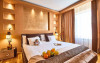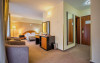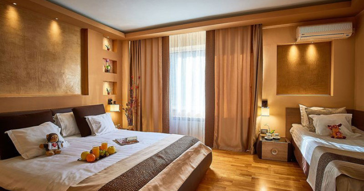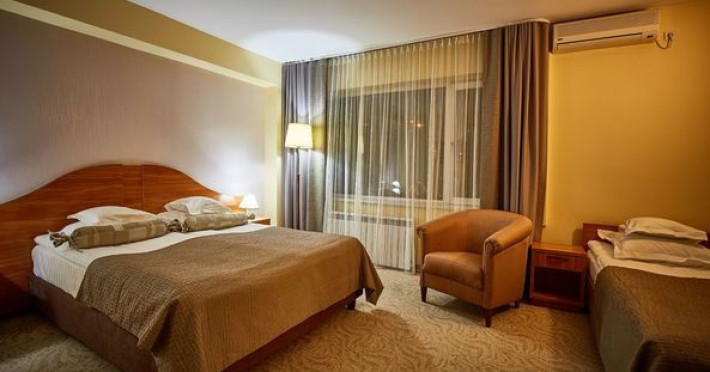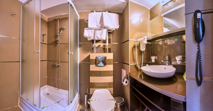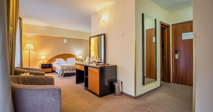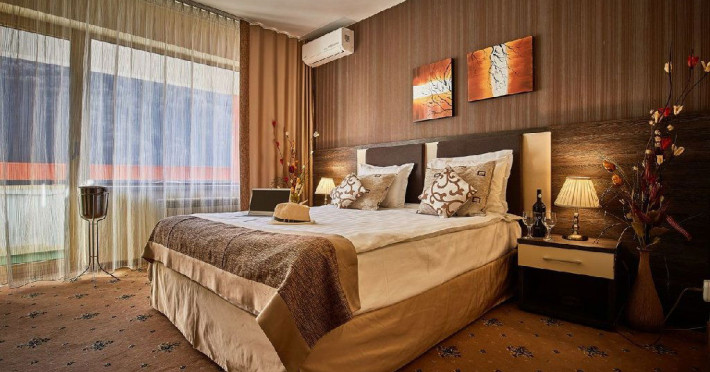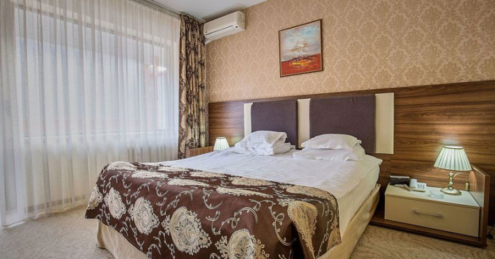 Hotelul Sinaia oferă o gamă variată de facilități pentru a asigura o experiență plăcută oaspeților săi. Printre amenitățile disponibile se numără un spa modern, o piscină interioară, saună și facilități de fitness, toate concepute pentru a oferi relaxare și confort. De asemenea, hotelul dispune de un loc de joacă interior, ideal pentru familiile cu copii, și servicii de masaj pentru cei care doresc să se răsfețe. Camerele hotelului sunt dotate cu feronerie de calitate, având feronerie mare care oferă vederi panoramice asupra munților din jur. Fiecare unitate include un TV cu ecran plat și o baie privată, echipată cu duș sau cadă, asigurând astfel confortul necesar pentru o ședere plăcută. WiFi este disponibil gratuit în întreaga proprietate, facilitând conectivitatea oaspeților. În apropierea hotelului, vizitatorii pot explora atracții celebre, cum ar fi Castelul Peleș, la doar 2 km distanță, sau Mănăstirea Sinaia, situată la 550 de metri. De asemenea, hotelul se află la câțiva pași de primărie și gara din Sinaia, facilitând accesul la transportul public și la diverse puncte de interes din zonă. Pentru mesele oaspeților, hotelul dispune de o cafenea și un restaurant care oferă un mic dejun tip bufet, precum și preparate internaționale. De asemenea, Crama Sinaia servește mâncăruri tradiționale românești, însoțite de dansuri și muzică live în zilele de joi, vineri și sâmbătă, oferind oaspeților o experiență culinară autentică.