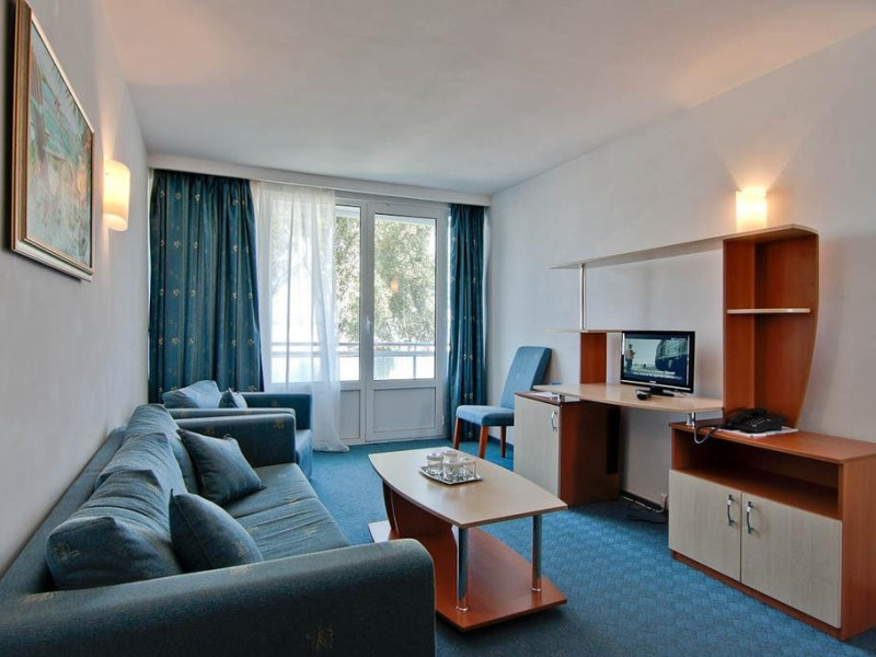 Apartamentele (13 apartamente) sunt formate din dormitor cu pat matrimonial si living spatios dotat cu canapea extensibila. Au in dotare frigider si sunt dispuse cate unul pe fiecare etaj, pozitionate pe colt, cu vedere laterala la mare. Suprafata: 36 mp.