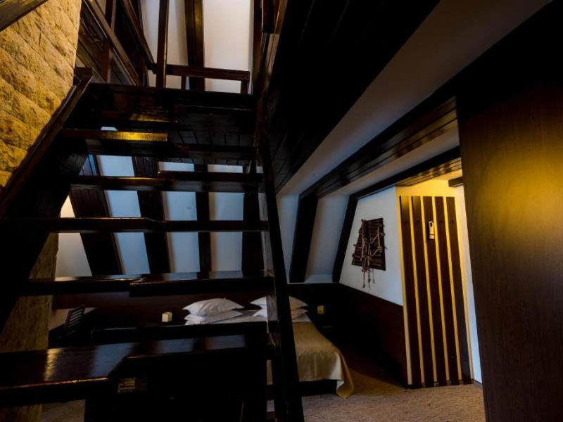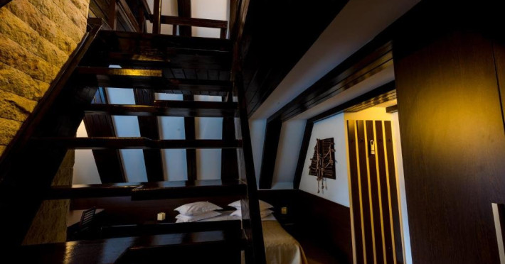 Camera dubla duplex, cu o suprafata de 35 mp ofera turistilor un dormitor cu pat matrimonial si si un dormitor la etaj cu 3 paturi single, baie cu dus, internet, AC, TV. Camera poate gazdui maxim 5 adulti si 1 copil de 6 ani, nu se poate acomoda pat suplimentar.