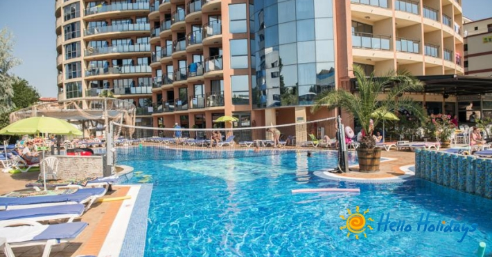 Acest hotel superb, de 4 stele se află aproape de centrul sudic al stațiunii Sunny Beach. Hotelul cu 10 etaje are 268 de camere și este la aproximativ 200 de metri de plajă.