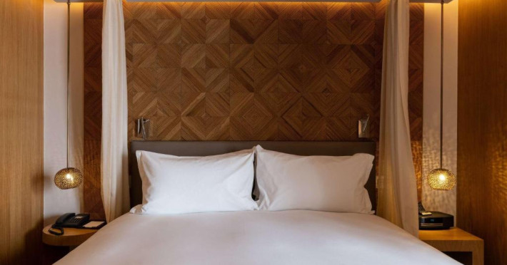Restaurantele hotelului servesc preparate gourmet inspirate din utilizarea uleiului de măsline sau mancăruri sănătoase de tip spa. L'Orangerie oferă o terasă cu vedere la Muntii Atlas, iar barul Darkum serveste ceaiuri internationale.