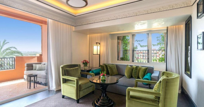 Camerele și suitele de lux ale Hotelului Sofitel Marrakech au balcon privat cu vedere la munți sau la grădini. Toate sunt decorate in stil contemporan cu piese de mobilier moderne, iar unele au un salon separat.