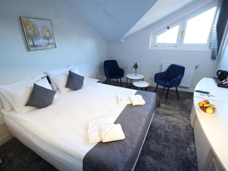 Camera matrimoniala/ twin - situata la parter si la mansarda, dotata cu pat matrimonial / twin