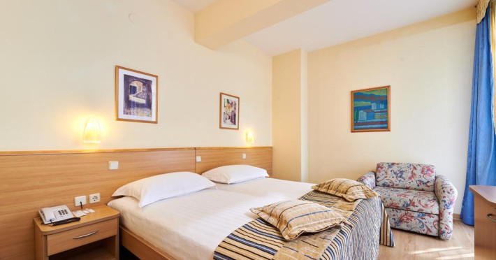 Facilități cameră dublă: pat matrimonial sau twin, baie proprie cu cadă sau duș, aer condiționat, televizor, telefon, uscător de păr, internet Wifi, seif.