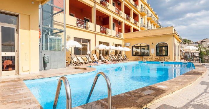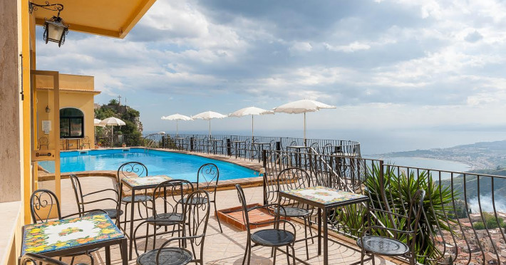 Hotel Sole Castello este amplasat pe varful unei coline, deasupra faimosului oras Taormina si ofera servicii de inalta calitate si privelisti fabuloase catre Vulcanul Etna si Marea Mediterana.