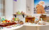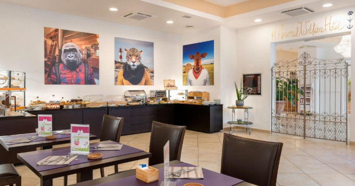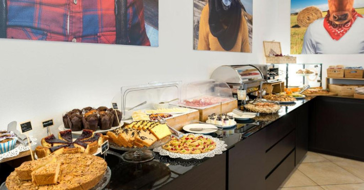 Micul dejun include preparate dulci și sărate, prăjituri proaspăt coapte și produse de patiserie. In timpul verii, la proprietate se servește și un brunch zilnic, cu produse organice și locale, care nu implică cruzime față de animale. In plus, se oferă opțiuni speciale de dietă, inclusiv vegetariene, vegane și fără gluten sau lactoză. Restaurantul partener din apropiere propune diferite oferte speciale.