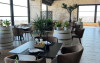 Restaurantul hotelului servește preparate din bucătăria albaneză și internațională, iar barul de pe acoperiș este locul ideal pentru un cocktail cu vedere panoramică asupra golfului Saranda. La doar cațiva pași se află promenada și numeroase restaurante locale.