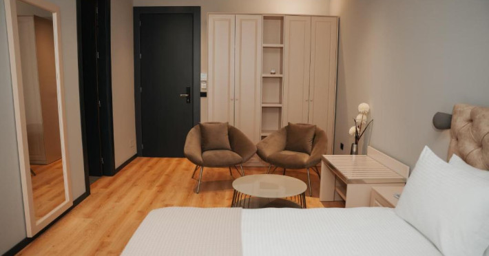 Camerele luminoase și confortabile sunt dotate cu aer condiționat, TV cu ecran plat, minibar și balcon - multe dintre ele oferind priveliști spectaculoase spre mare. Centrul spa al hotelului este perfect pentru momente de răsfăț, cu piscină interioară, saună și servicii de masaj.