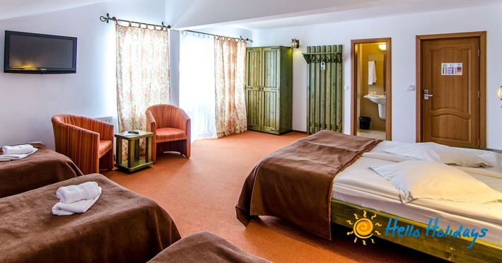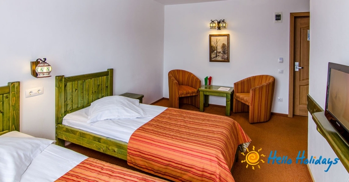 Camerele sunt dotate cu televizor, uscator de par, baie cu cada.