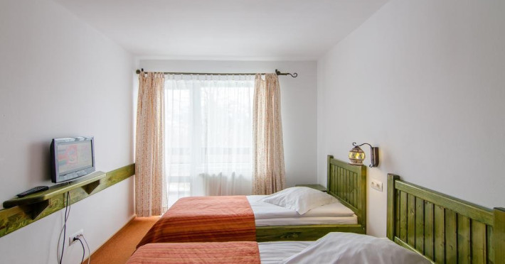 Camerele duble superioare 3*** sunt prevazute cu TV, AC, minibar, baie proprie cu dus (cabina de dus), pardoseala din gresie, balcon (la etaj), geam termopan, mobilier nousi au suprafata intre 18-22 mp.
