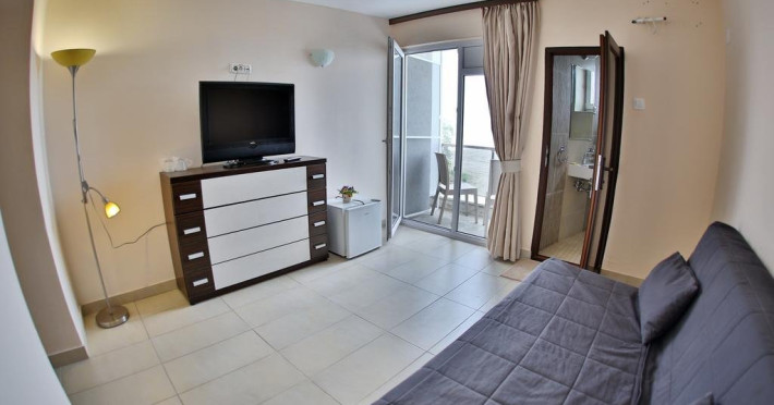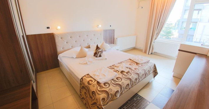 Apartamentele 2** - living si dormitor, TV, minibar, AC (in dormitor), baie proprie cu dus (cadita), pardoseala din gresie, 2 balcoane separate.