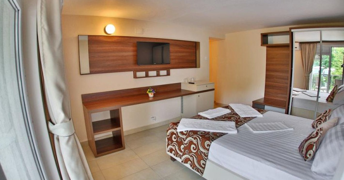 sunt prevazute cu TV, minibar, AC, baie proprie cu dus, pardoseala din mozaic cu covorase, balcon (la etaj)si au suprafata de 13 mp.