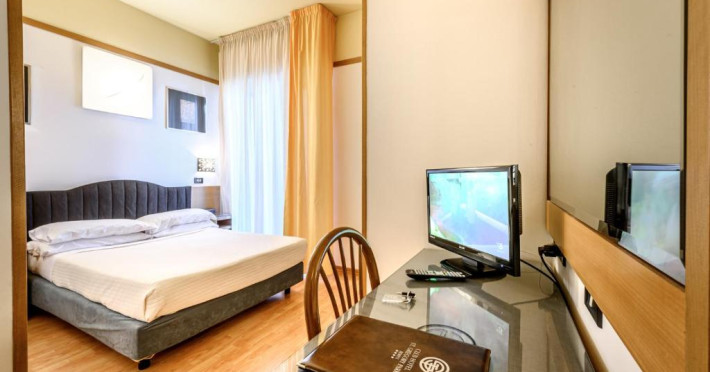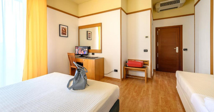 Hotelul este chiar vizavi de promenada Marina di Rimini.