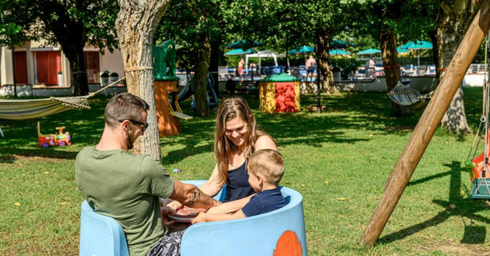 Barul Risto oferă mese usoare, care pot fi savurate langă piscină, pe terasă sau in parc.