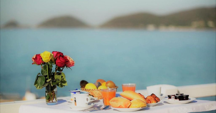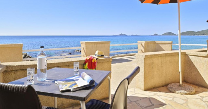 Camerele luminoase sunt decorate in nuanțe marine și dispun de balcoane private de unde puteți admira apusul. Restaurantul hotelului servește specialități corsicane autentice și fructe de mare proaspete, intr-un cadru rafinat cu vedere panoramică.