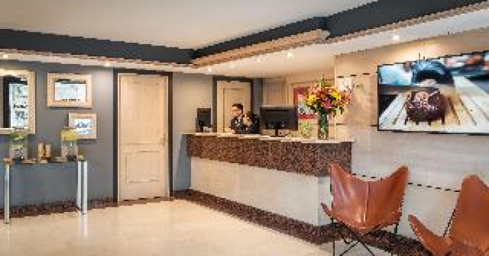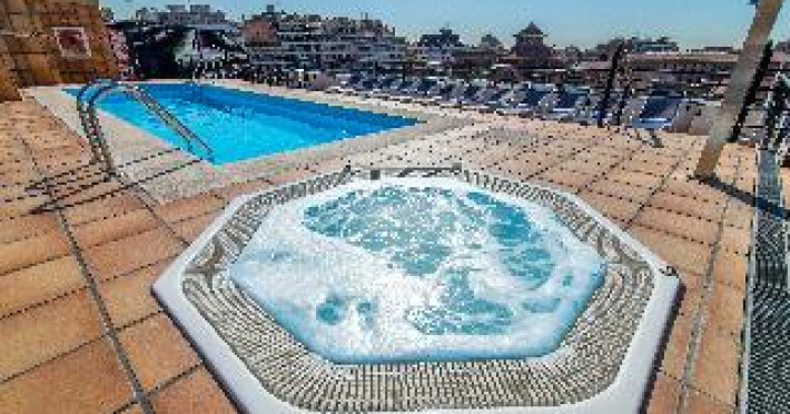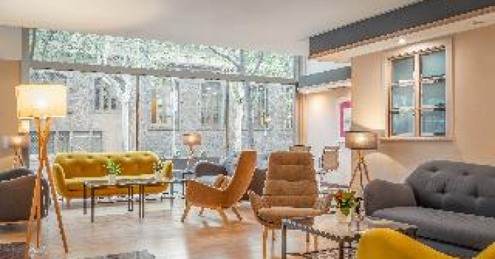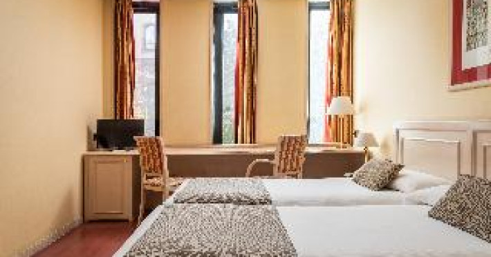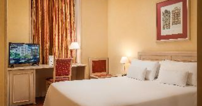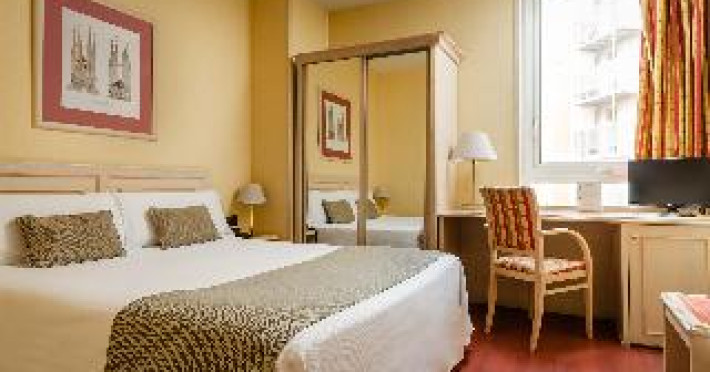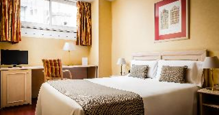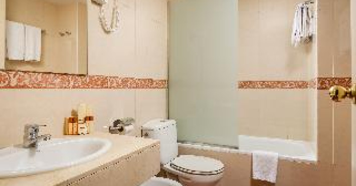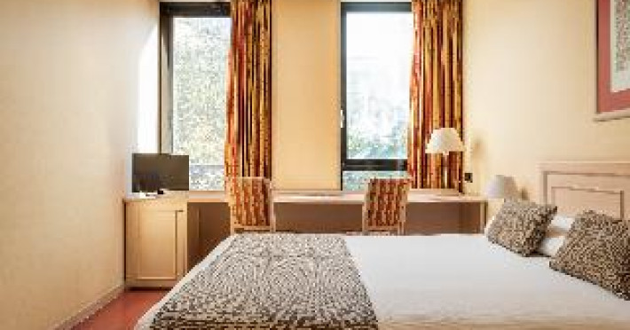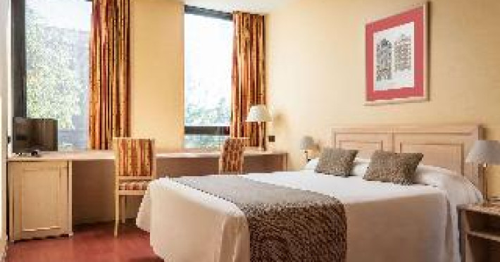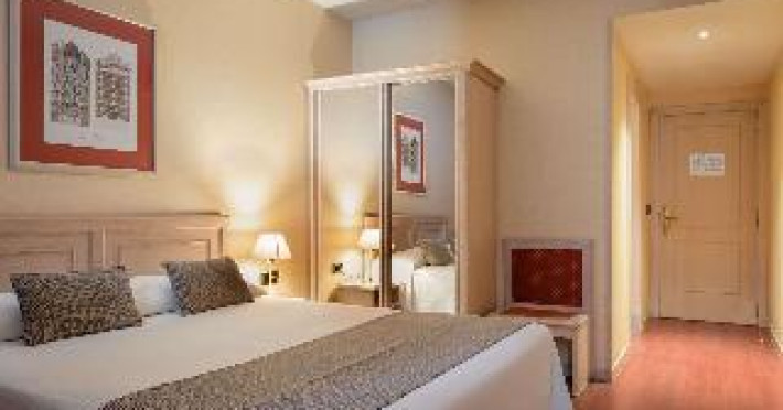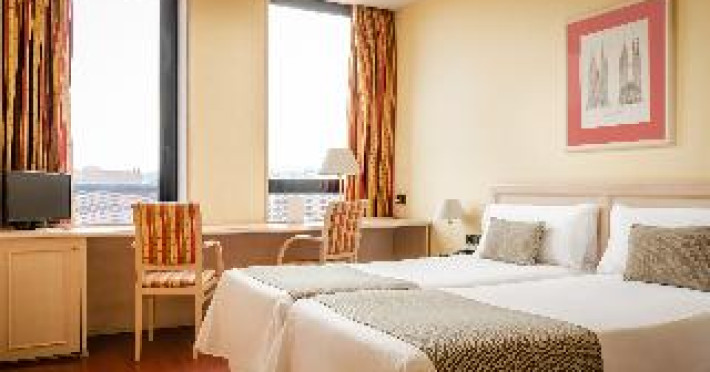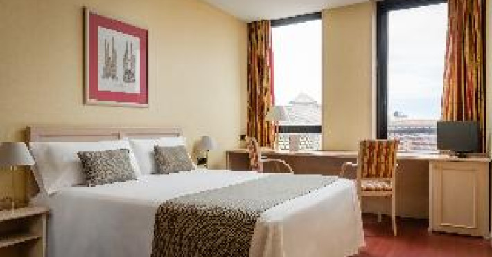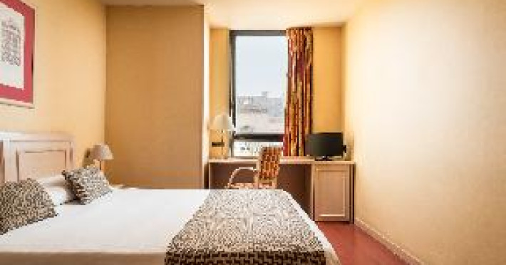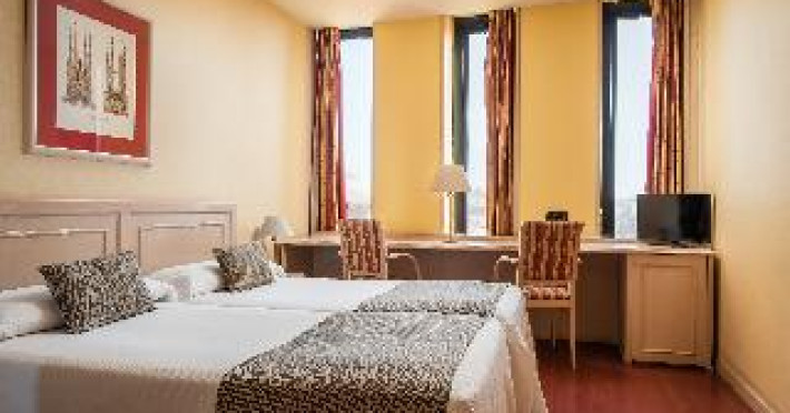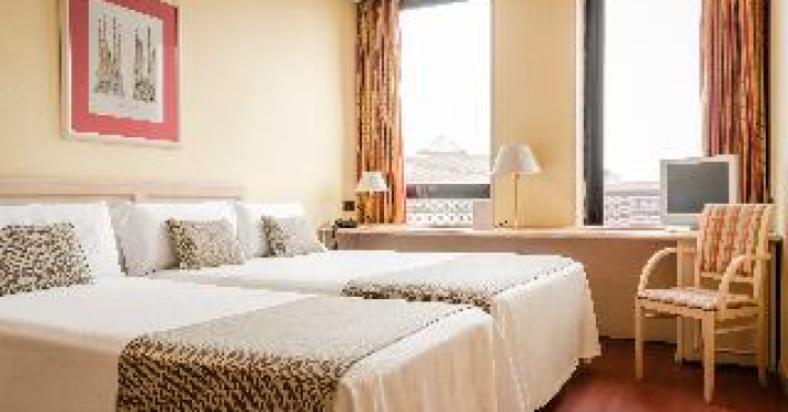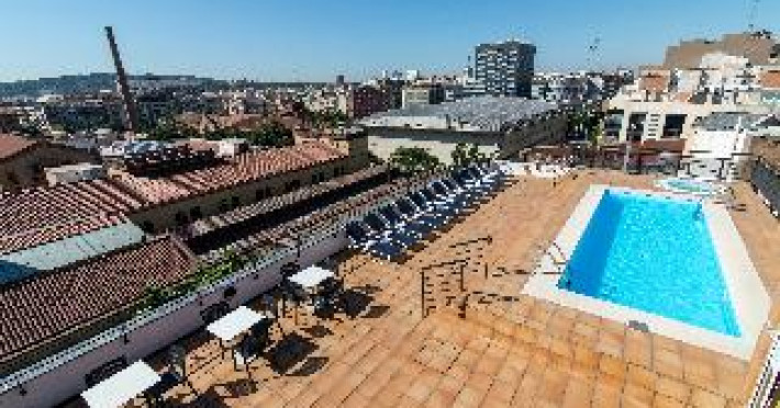 This city hotel, housed in a modern building offering panoramic views of the city, is located in L'Eixample, very close to the Fair and Exhibition Centre in Plaza España and close to the financial and commercial centre of Barcelona. The hotel is also within easy reach from Sants Station, where guests will find convenient public transport services linking to most parts of the city. Barcelona El Prat Airport is less than 30-minute drive. This is an ideal location for those wishing to enjoy a central location in Barcelona. All rooms at the hotel are air-conditioned and come with satellite TV, safe, phone, desk and fully equipped bathroom with hairdryer. To guarantee a pleasant stay, the hotel features an outdoor terrace area with an outdoor swimming pool and jacuzzi.This city hotel, housed in a modern building offering panoramic views of the city, is located in L'Eixample, very close to the Fair and Exhibition Centre in Plaza España and close to the financial and commercial centre of Barcelona. The hotel is also within easy reach from Sants Station, where guests will find convenient public transport services linking to most parts of the city. Barcelona El Prat Airport is less than 30-minute drive. This is an ideal location for those wishing to enjoy a central location in Barcelona. All rooms at the hotel are air-conditioned and come with satellite TV, safe, phone, desk and fully equipped bathroom with hairdryer. To guarantee a pleasant stay, the hotel features an outdoor terrace area with an outdoor swimming pool and jacuzzi.