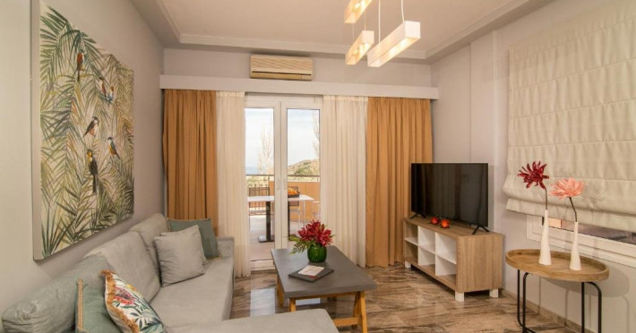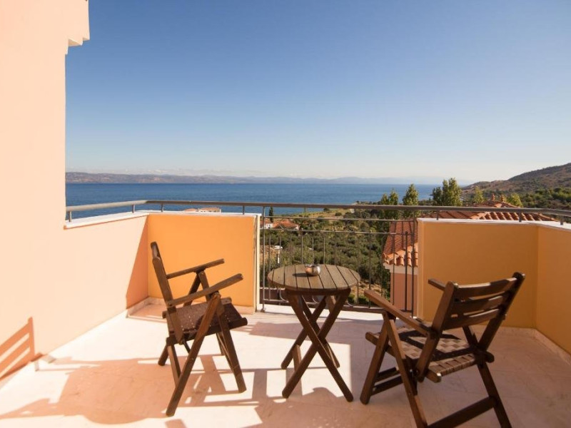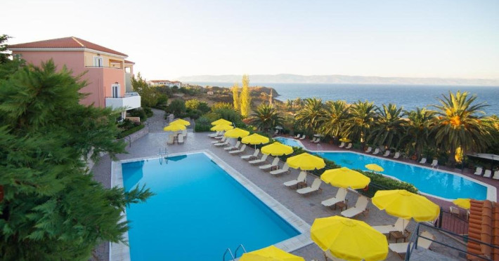 DESCRIERE: Cu vedere la Eftalou si Marea Egee, oaspetii se pot bucura de 3 piscine insotite de un bar si cada cu hidromasaj, impreuna cu o taverna traditionala.DOTARI CAMRERE: Hotelul fermecator impresioneaza cu camere moderne si spatioase, oferind vederi minunate. Acestea sunt echipate cu telefon cu linie directa, aer conditionat, televizor prin satelit, minibar si uscator de par. Anumite camere dispun chiar si de o chicineta.