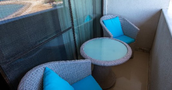Apartamentele sunt formate dintr-un dormitor matrimonial si un living, precum si un balcon cu vedere la mare. Suprafata aproximativa este de 65 mp, iar a balconului de 12 mp. In dormitor se afla un pat matrimonial iar In living o canapea extensibila si masuta cu fotolii. Apartamentele sunt mobilate in stile retro cu mobilier de culoare alba.