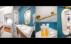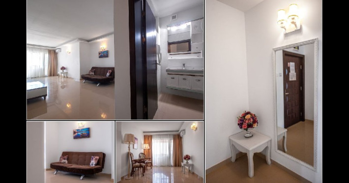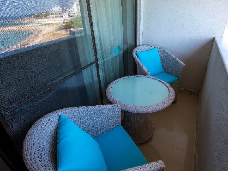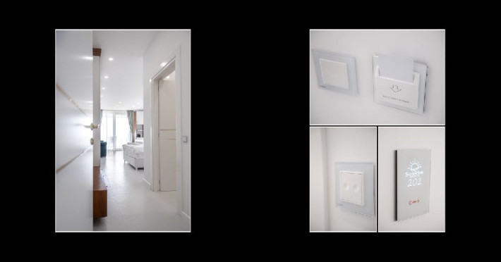 Apartamentele sunt formate dintr-un dormitor matrimonial si un living, precum si un balcon cu vedere la mare. Suprafata aproximativa este de 65 mp, iar a balconului de 12 mp. In dormitor se afla un pat matrimonial iar In living o canapea extensibila si masuta cu fotolii. Apartamentele sunt mobilate in stile retro cu mobilier de culoare alba.