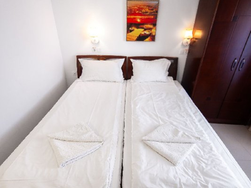 Camera single este dotata cu doua paturi individuale si are o suprafata de aproximativ 14-15 mp.