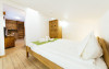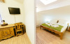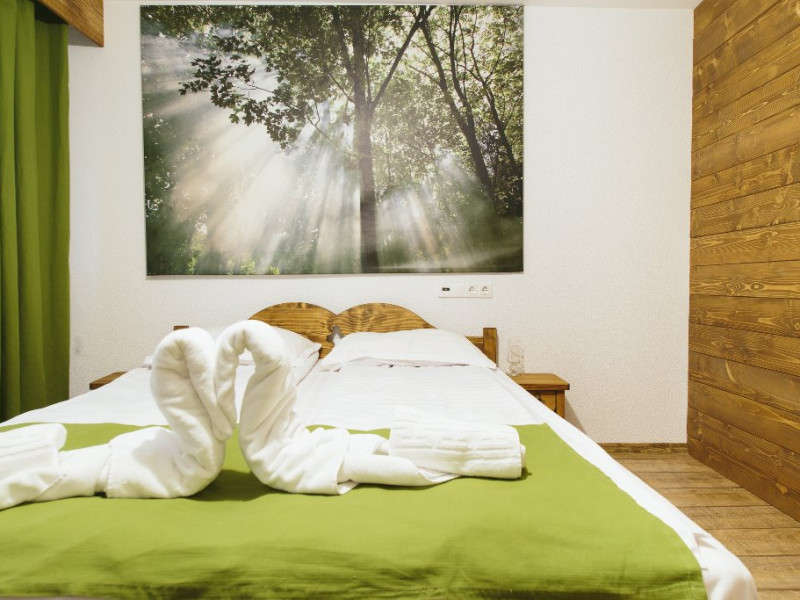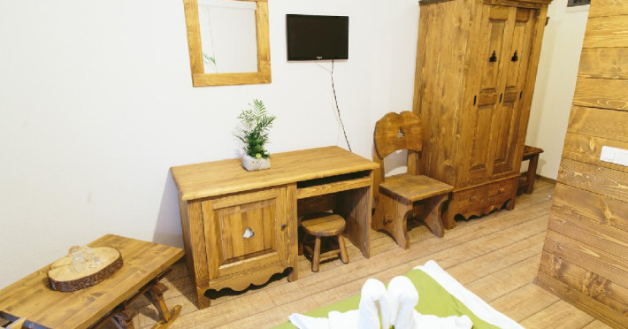 Dotari: televizor LED, dulap, frigider, baie dotata cu cabina de dus si uscator de par, telefon, internet, parchet, mobilier nou din lemn masiv. Suprafata camerei este de aproximativ 31 m.