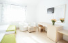 Dotari: televizor LED, dulap, frigider, baie dotata cu cabina de dus si uscator de par, telefon, internet.Suprafata camerei este de aproximativ 23 m.
