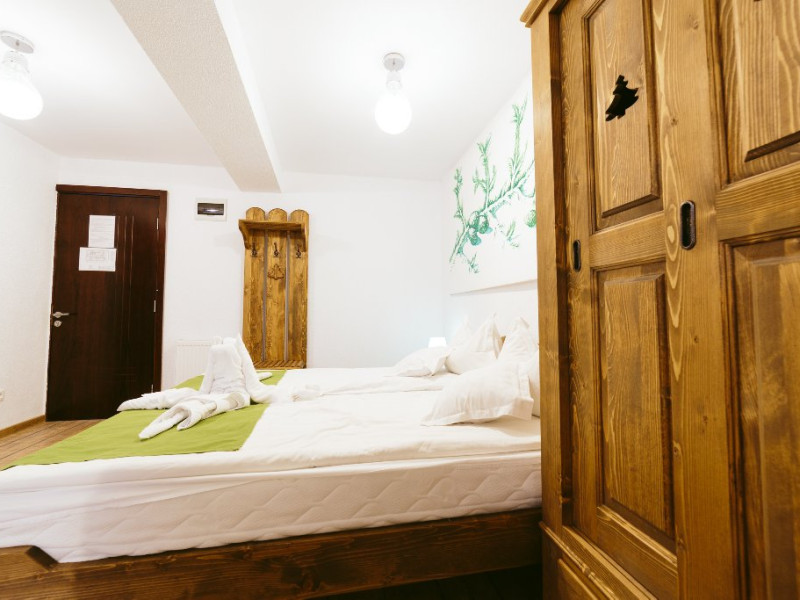 Camera dubla fara balcon - Camerele duble fara balcon au fost renovate recent si toate au mobilier nou din lemn masiv si parchet. Acest tip de camere au vedere panormaica spre munti, fara balcon.Suprafata camerei este de aproximativ 20 m.