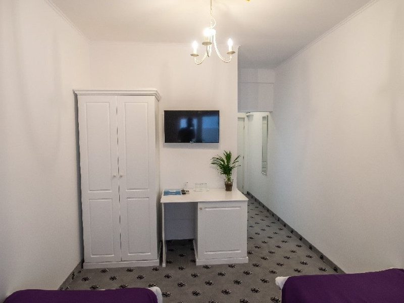 Bucurati-va de un somn odihnitor, intr-un microclimat elegant, cu mobilier din lemn masiv in culori placute si doua paturi twin de 90x 200cm.