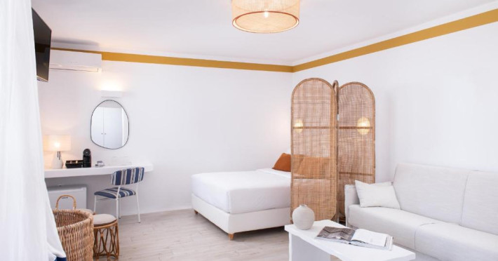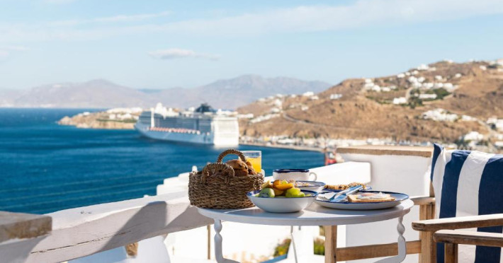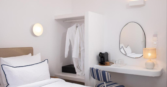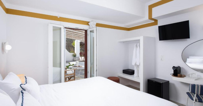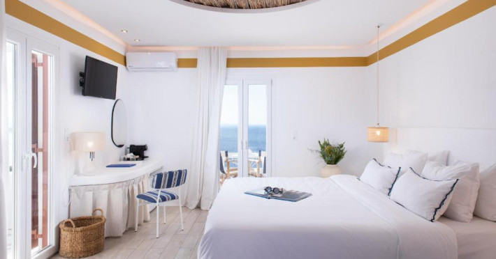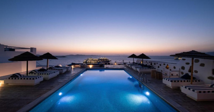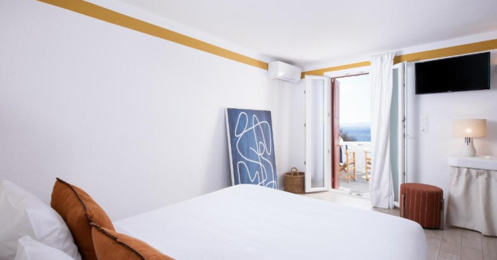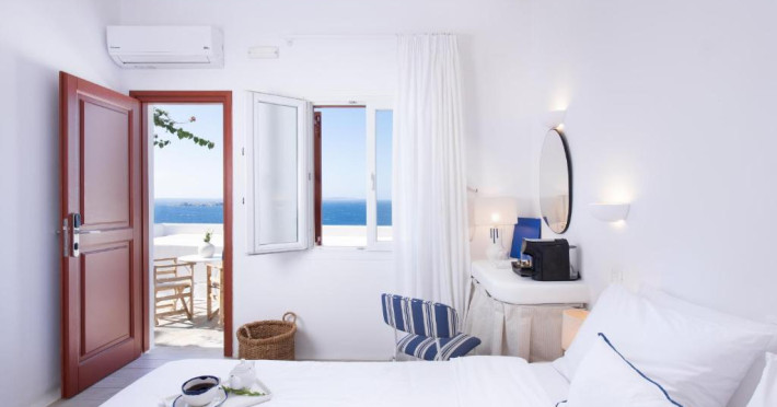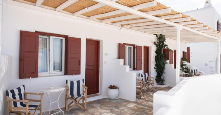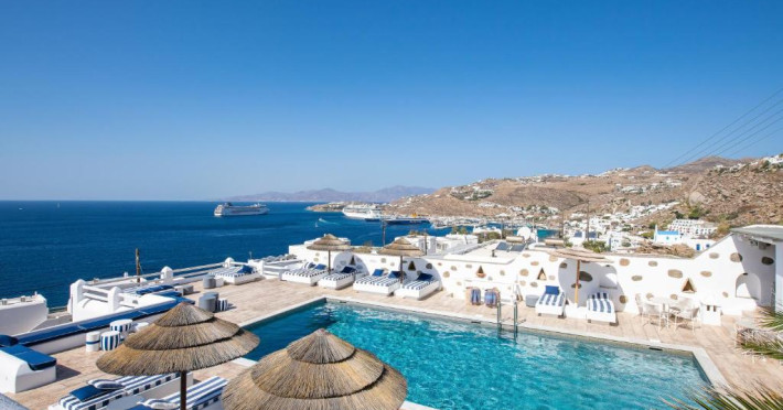 Hotelul Tagoo este un mic complex hotelier pe mai multe niveluri, recent renovat, proiectat in arhitectura și decorul tradițional mykonian, cicladic.