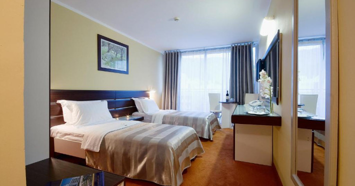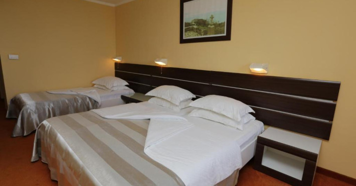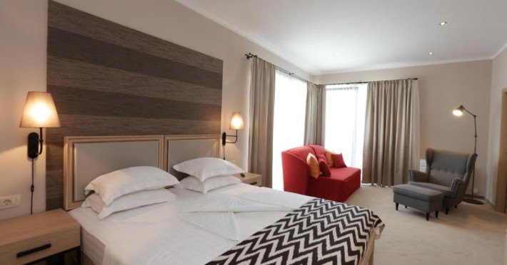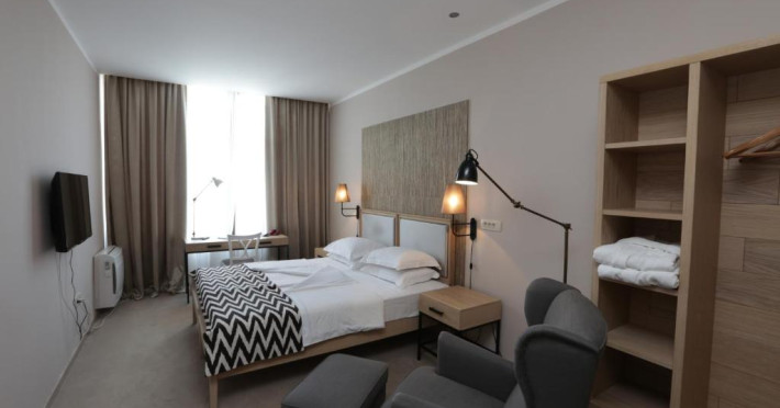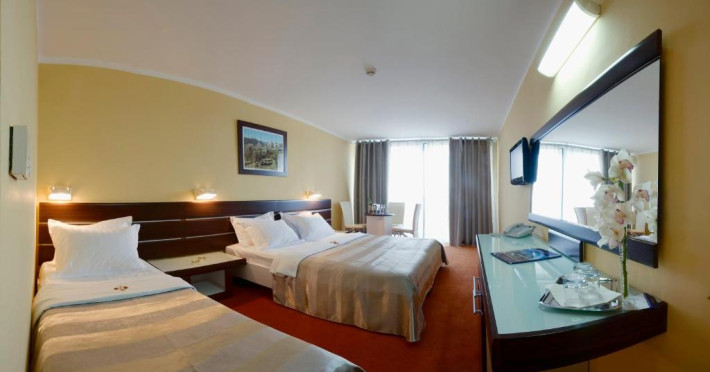 Facilitati camera dubla: pat matrimonial sau twin, baie proprie, seif (contra cost), TV.